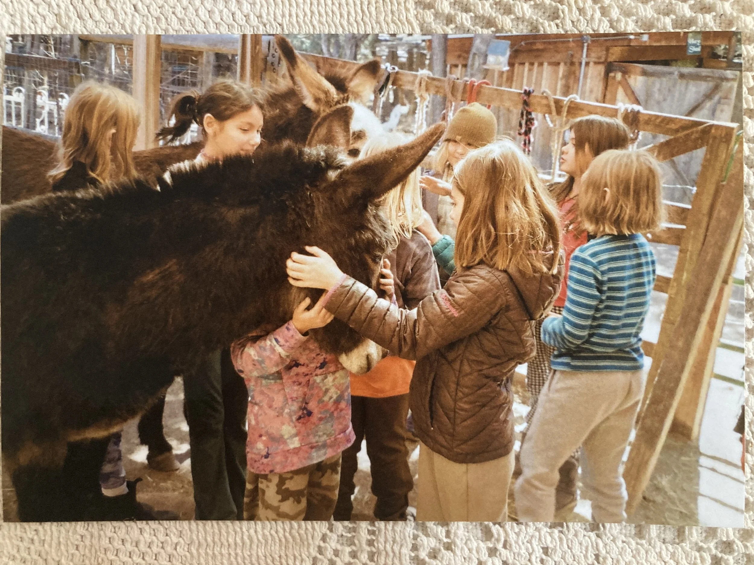 A new Donkey has arrived! This donkey, Jasmine, was adopted to accompany our other donkey Julia. Jasmine is a younger Donkey; as Julia recovers from her stay in the hospital (for a tumor removal) Jasmine lifts Julias spirits and together they greet company coming to give them attention. Donkeys, along with horses and other equines, should be kept in pairs. These pairs can stick together for life!